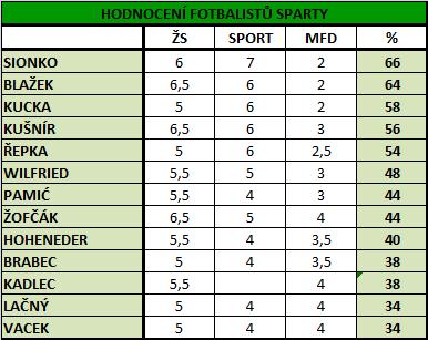 - Podle Sportu byl nejlepším sparťanem Libor Sionko, v Mladé frontě Dnes to vyhrálo trio Sionko – Blažek – Kucka.