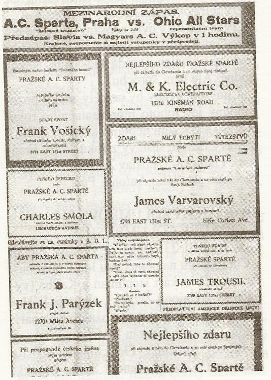 Pozdravné inzeráty v americkém tisku před utkáním Sparty proti Ohio All Stars.