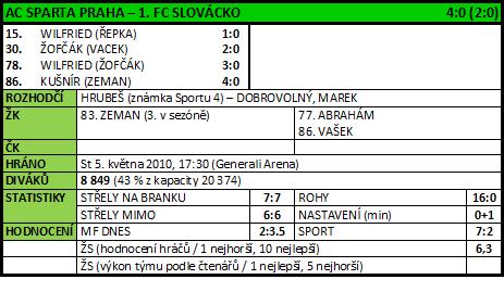 + Nejlepším sparťanem proti Slovácku byl podle deníku Sport Bony Wilfried (známka 8). Redaktorům MF Dnes se nejvíce líbil Igor Žofčák, který za svůj výkon dostal absolutní známku 1.